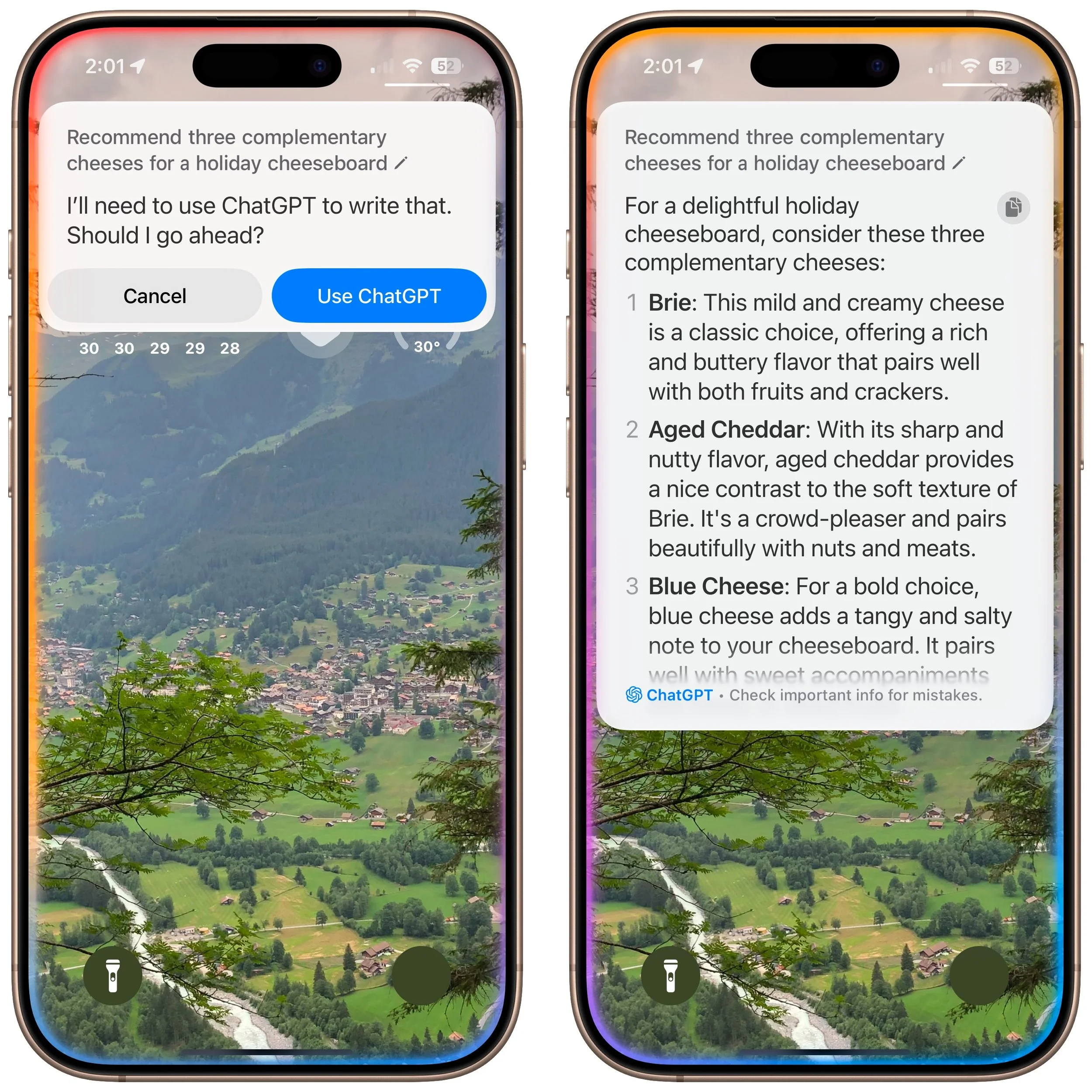 Siri will usually pass along anything that it can't answer. But for best results, start your Siri command with “Ask ChatGPT…” However, Siri’s implementation is not as fluid as using OpenAI’s ChatGPT app directly. Still, it’s a convenient option for quick queries. One incredibly useful feature is that Siri can take a screenshot and send it to ChatGPT if you ask something like "Can you explain what is on my screen?" or "Can you explain this article to me?" (be sure to switch from a screenshot to "Full Content" before sending your request).