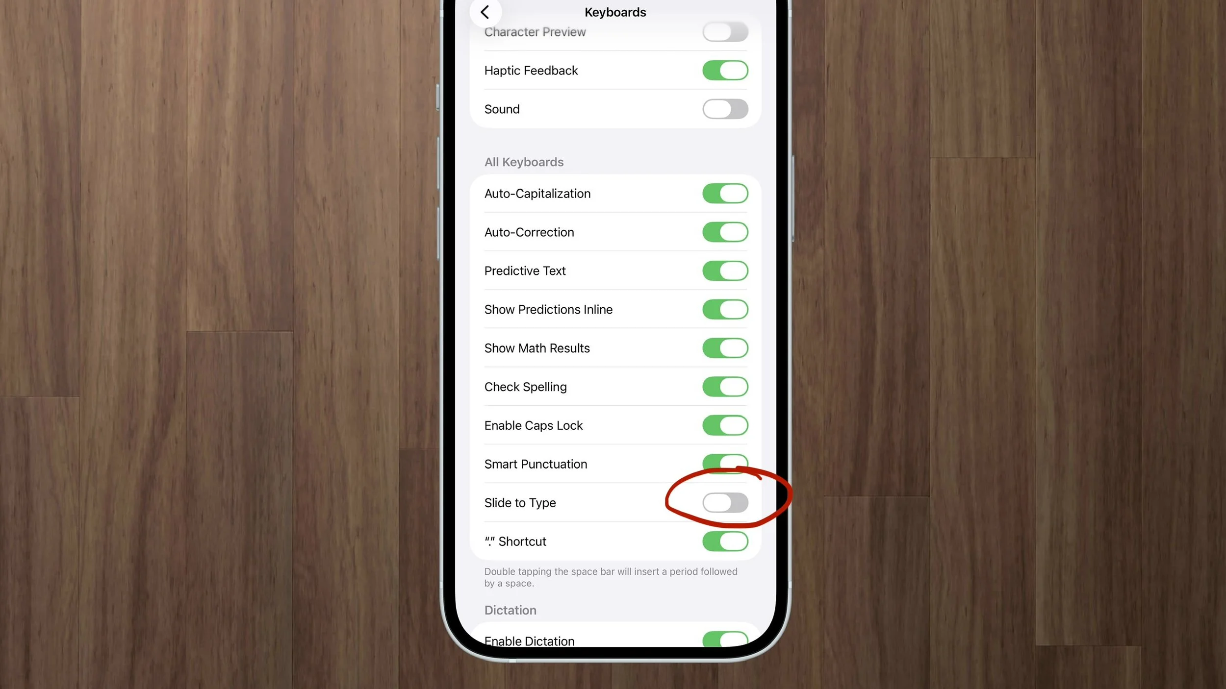 Turn Slide to Type off