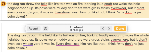Writing Tools are available in nearly all apps that accept text. Either look for an Edit > Writing Tools menu or Control-click a text selection and look in the Writing Tools submenu. Right now, Apple apps like Mail and Notes provide proofreading controls that let you see (and revert) each change independently. With the Rewrite and Summary tools and Proofread in other apps, you have to compare the original and the rewrite manually, with your only options being to replace the selected text or copy the suggested revision.