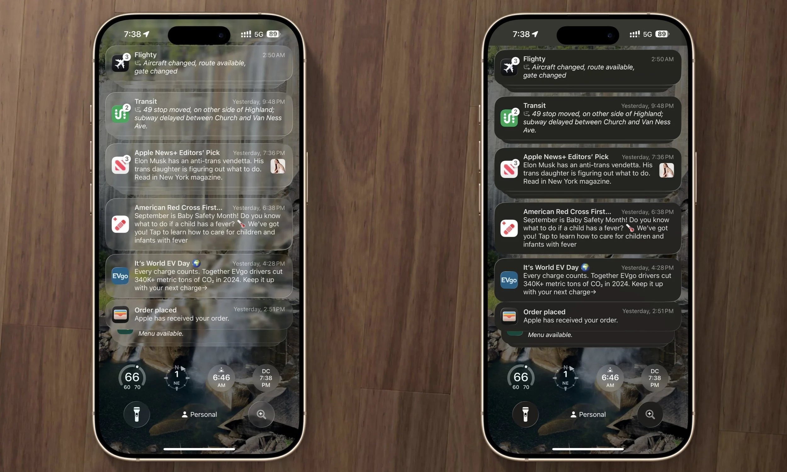 Left: default Liquid Glass
