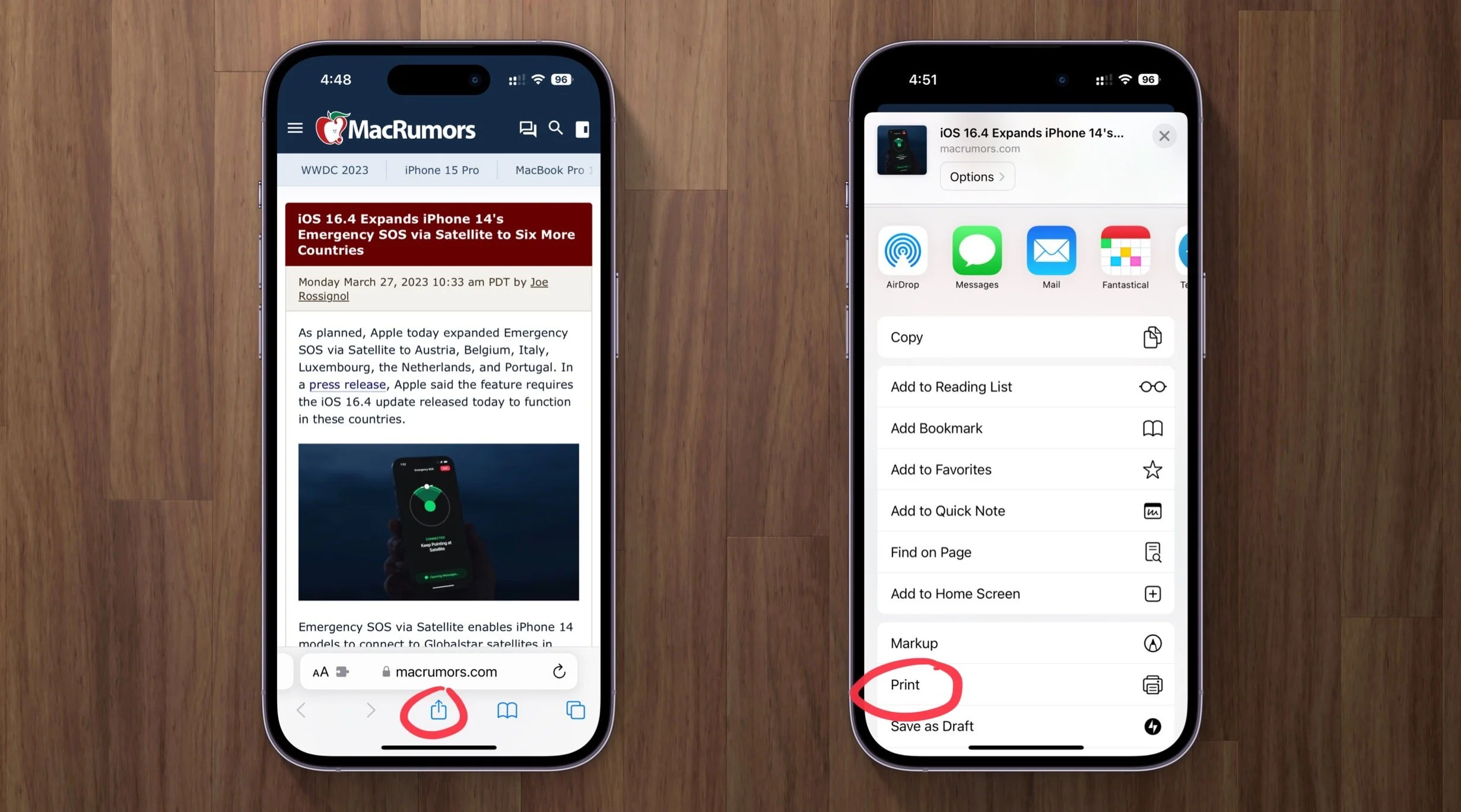 Unfortunately, there is no standard way that every app on iPhone and iPad pulls up the print menu. Most apps follow this first convention but there are a few exceptions.