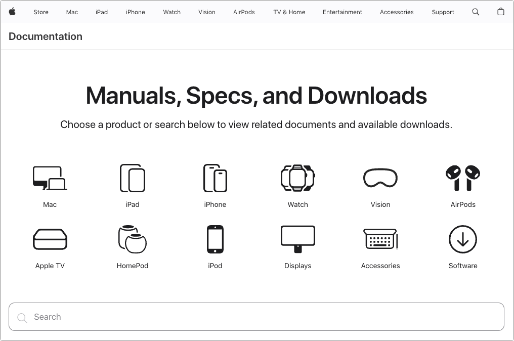 Apple publishes a multitude of manuals and tons of technical documentation for its products on its support site, but until recently, it could be challenging to find something specific because the search engine on Apple’s site isn't great. For a better path into Apple’s online support materials, check out the company’s new Documentation site, which brings together manuals, specs, and some downloads for nearly all its products. The operating system User Guides are particularly helpful, and they even provide a Version pop-up menu that lets you make sure you’re getting information for the version you’re using.