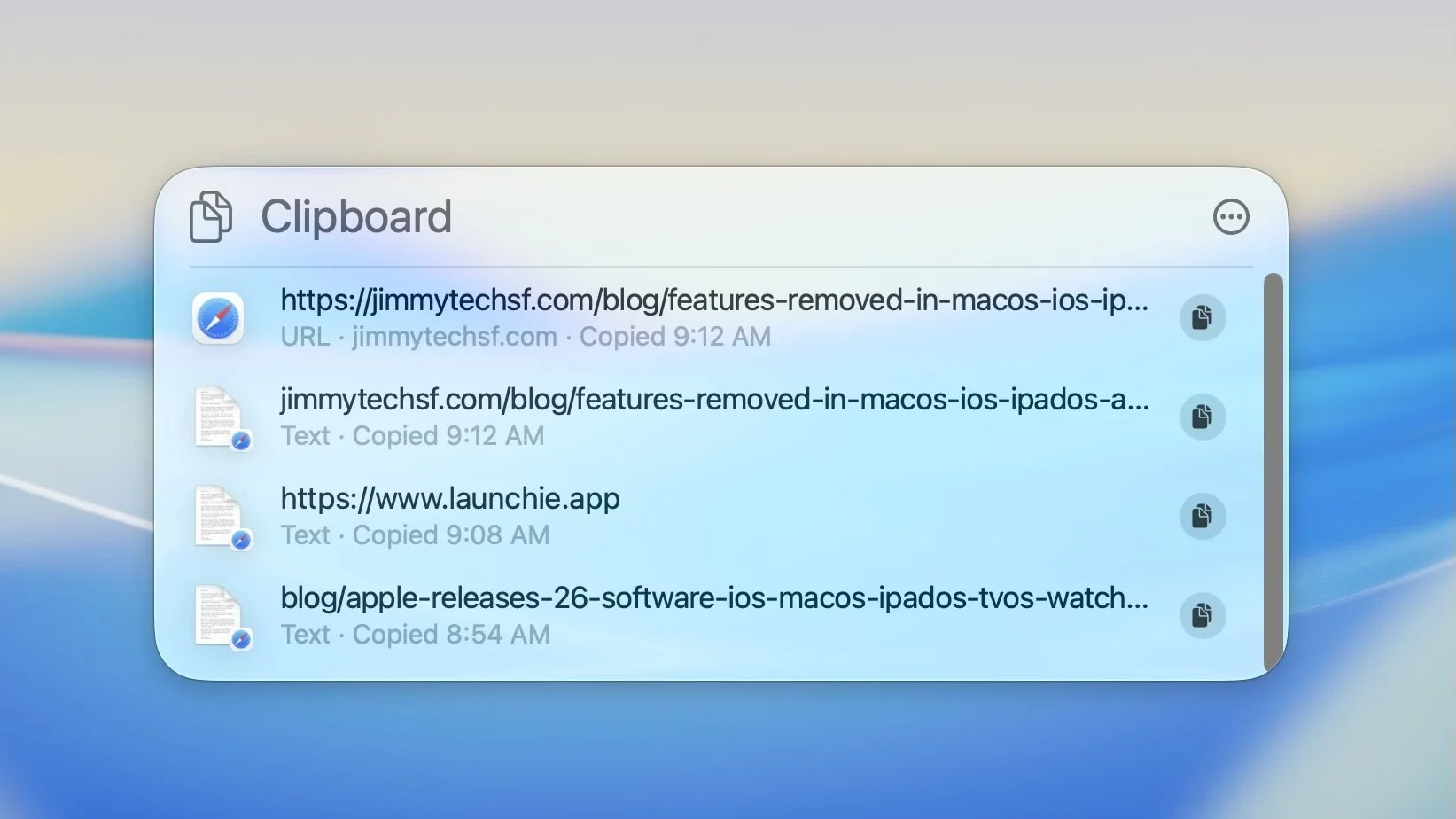 If you are a heavy user of copy/paste, you may be excited to learn that macOS 26 Tahoe, introduced last week, gains clipboard history! Now, every time you copy something, it can be later retrieved even after you have copied other content. However, for privacy reasons, it is not enabled by default.