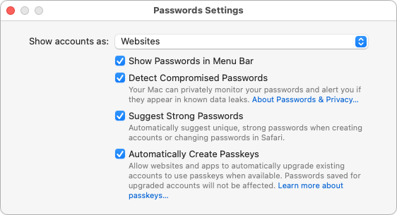 Starting in macOS 15 Sequoia, iOS 18, iPadOS 18, and visionOS 2, Passwords is now a stand-alone app rather than being trapped inside of System Settings. If you have resisted using a password manager or don’t wish to continue subscribing to an alternative, give Apple’s Passwords a try. It makes creating, maintaining, and entering passwords faster, easier, and more secure than doing it by hand. Those already using a password manager can export their accounts and import into Passwords. If you are using Google Chrome on Mac, the first time you launch the Passwords app you are offered to automatically import your passwords from Google.