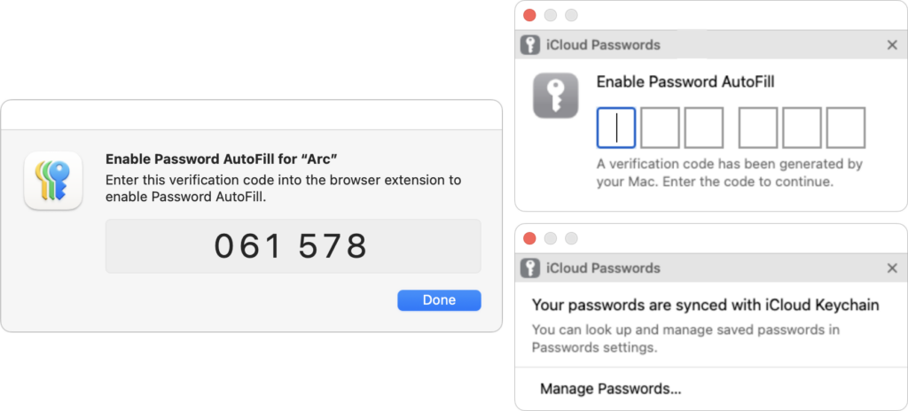 Set up iCloud Passwords for other browsers: Apart from Safari, Chromium-based Web browsers (Arc, Brave, Google Chrome, Microsoft Edge, etc.) can access and autofill your saved passwords if you install Apple’s iCloud Passwords Chrome extension. Firefox users can install the iCloud Passwords add-on. The overall experience is not as seamless as in Safari, requiring a once-per-launch code, and you have to create new accounts in Safari or manually in Passwords, but it works. My general suggestion for most people is to use Safari. It's my favorite browser.