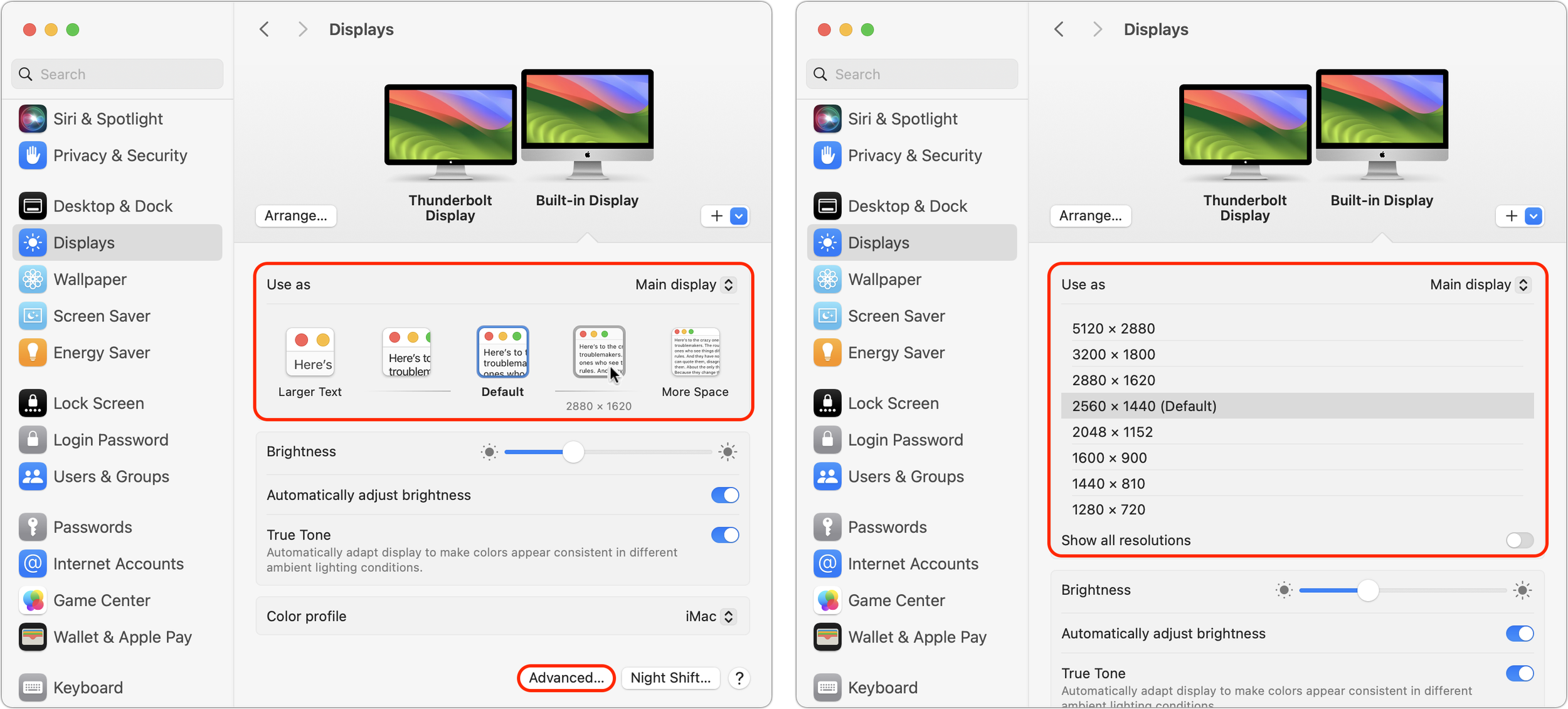 If you are familiar with the technical aspects of monitor resolutions, you should know that changing the resolution on this screen does not truly change the resolution. Your Mac actually runs your monitor at full resolution, but just upscales the content to mimic the different resolutions while maintaining clarity, unless you choose one of the Low Resolution options.